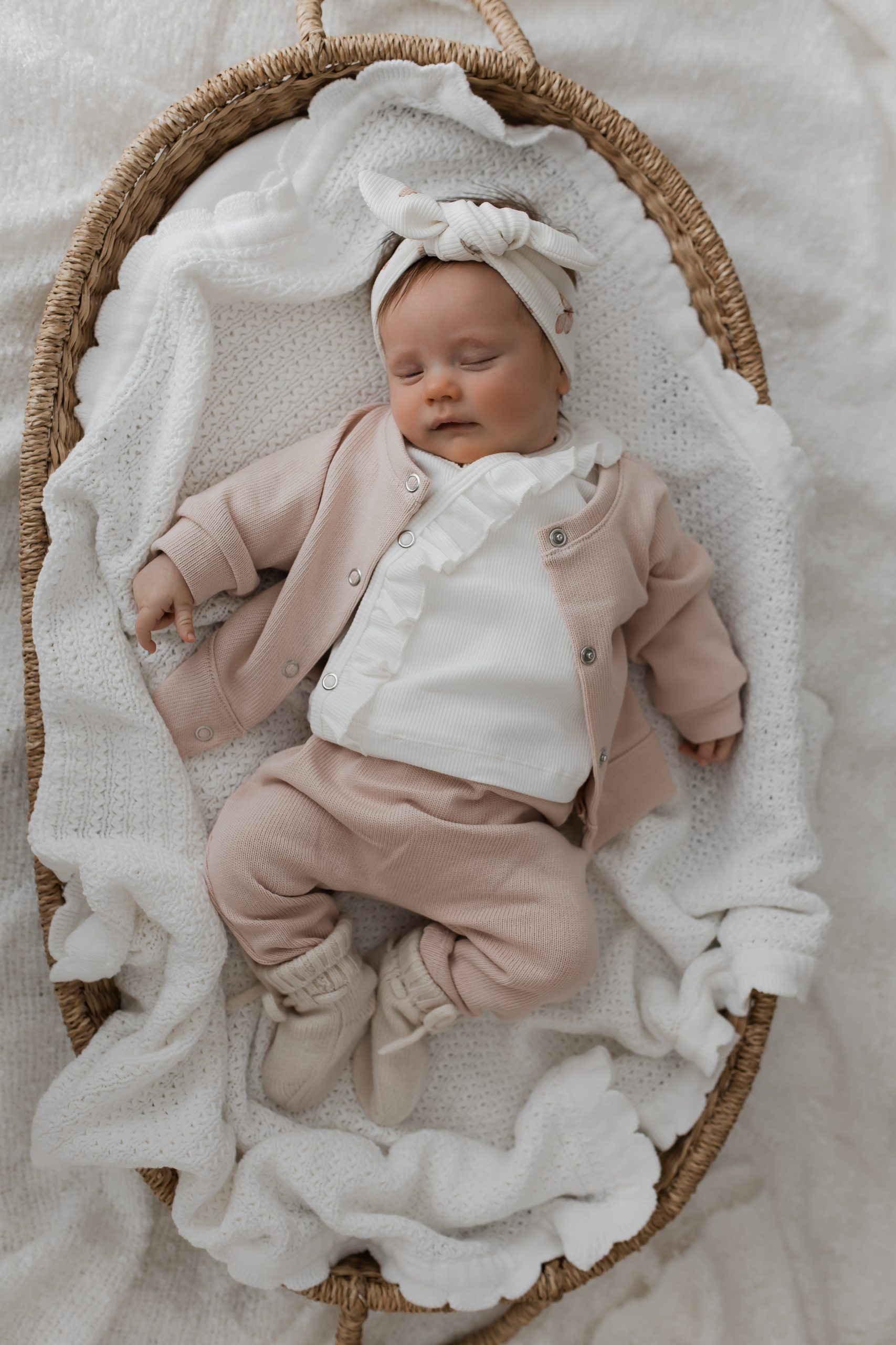 Een super schattig gebreid baby vestje voor je kleintje. Met een vestje houd je je baby heerlijk warm tijdens de koudere herfst- en winterdagen. Het is een heerlijk item om te hebben voor je kleintje. Het baby vestje is gemaakt van super zachte rekbare gebreide stof in een mooie lichtroze kleur. Omdat het goed rekbaar is draagt het heerlijk zacht en comfortabel en je kleintje kan zich er makkelijk in bewegen. Het baby vestje gebreid ecru heeft aan de buitenkant drukknoopjes zodat het heel makkelijk aan- en uit te trekken is. Let wel op dat je niet aan de stof trekt als je de drukknopen openmaakt.