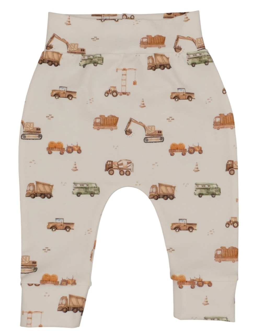 Een schattig babybroekje voor de allerkleinsten. Een off-white broekje met een stoer printje van autootjes. Het newbornbroekje is gemaakt van super zacht jersey/tricot. Hierdoor is het goed rekbaar en draagt het heerlijk zacht en comfortabel en kan je kleintje zich er makkelijk in bewegen. De tricot pilt en lubbert niet en blijft ook na het wassen super mooi. Het babybroekje heeft aan de bovenkant een elastische tailleband die makkelijk mee rekt met aan- en uitkleden van je kleintje. Aan de bovenkant heeft het broekje wat extra ruimte zodat ook de luier van je kindje er prima inpast. Aan de onderkant heeft het broekje boordjes zodat het mooi aansluit en niet omhoog kruipt.