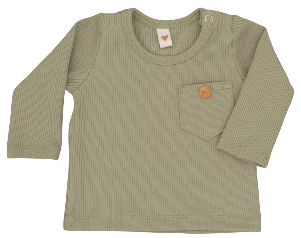 Babyshirtje lange mouw lichtgroen met zakje (rib)